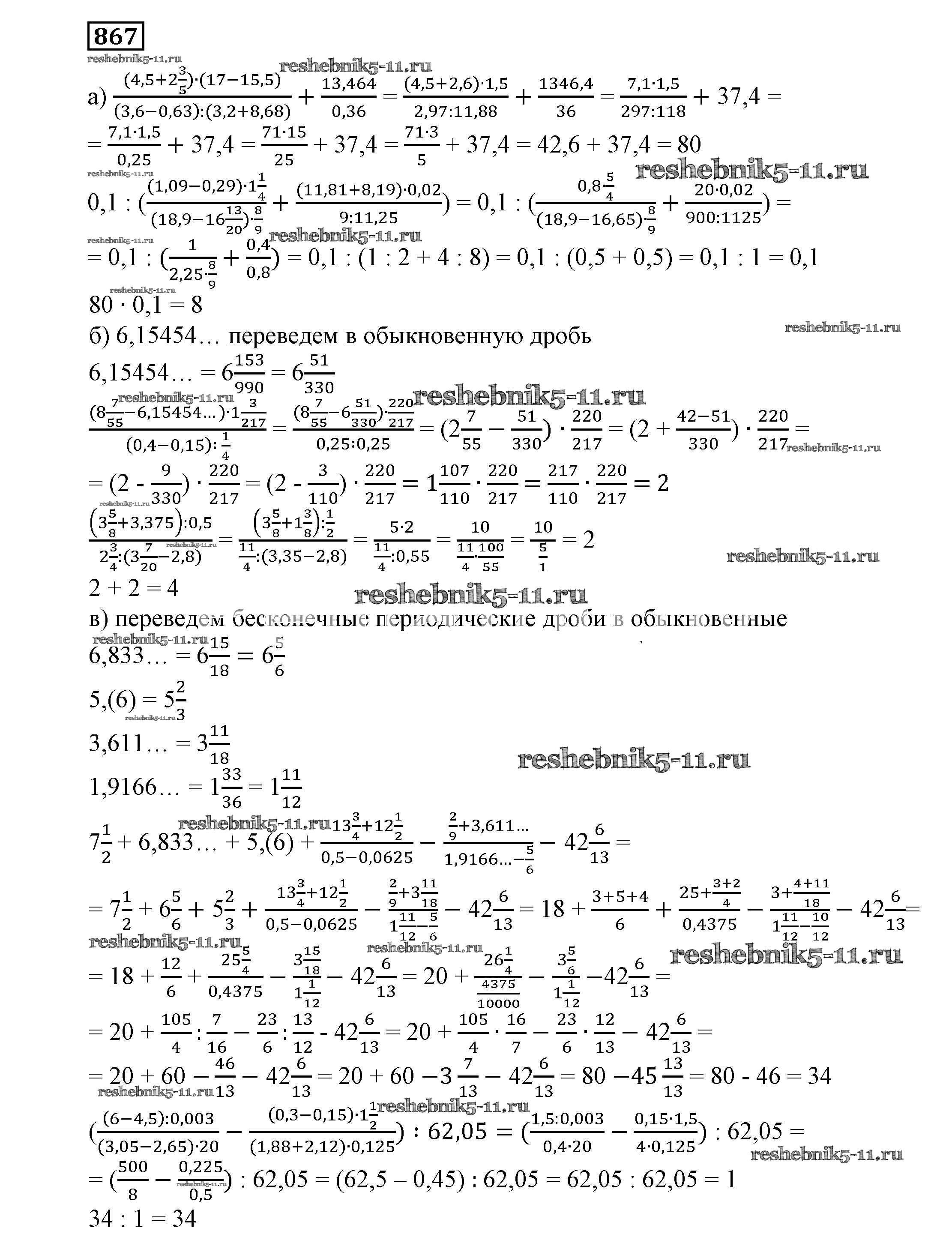 Готовая домашняя работа с ответами по Алгебре за 7 класс Никольский, Потапов, Решетников, Шевкин Учебник МГУ - школе Просвещение 2013 ФГОС - Упражнения 867