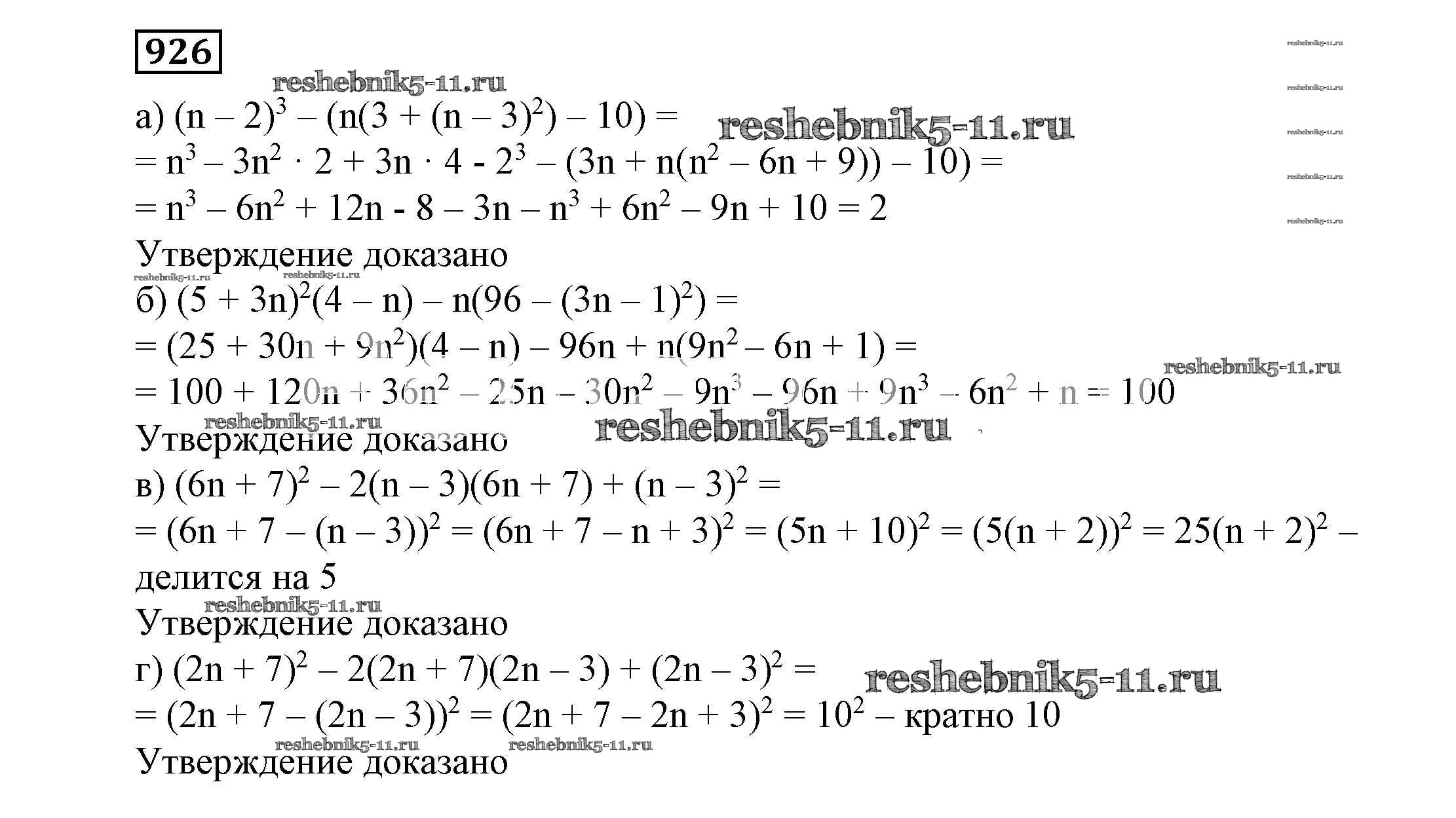 Готовая домашняя работа с ответами по Алгебре за 7 класс Никольский, Потапов, Решетников, Шевкин Учебник МГУ - школе Просвещение 2013 ФГОС - Упражнения 926