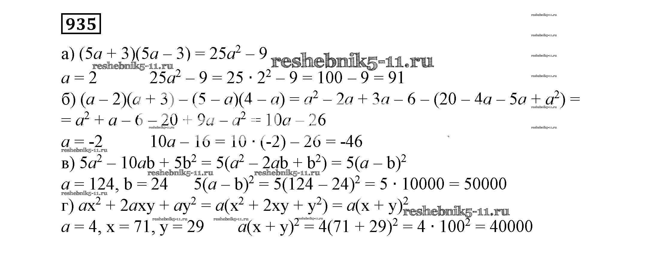 Готовая домашняя работа с ответами по Алгебре за 7 класс Никольский, Потапов, Решетников, Шевкин Учебник МГУ - школе Просвещение 2013 ФГОС - Упражнения 935