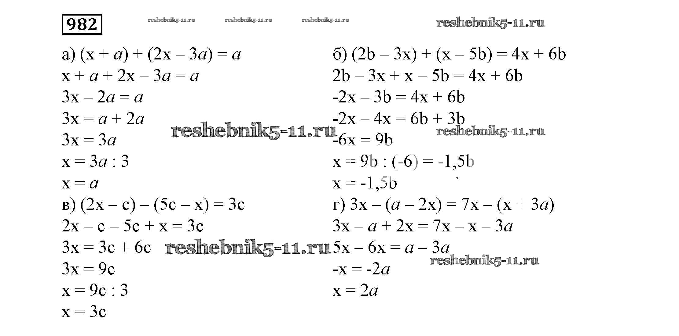 Готовая домашняя работа с ответами по Алгебре за 7 класс Никольский, Потапов, Решетников, Шевкин Учебник МГУ - школе Просвещение 2013 ФГОС - Упражнения 982