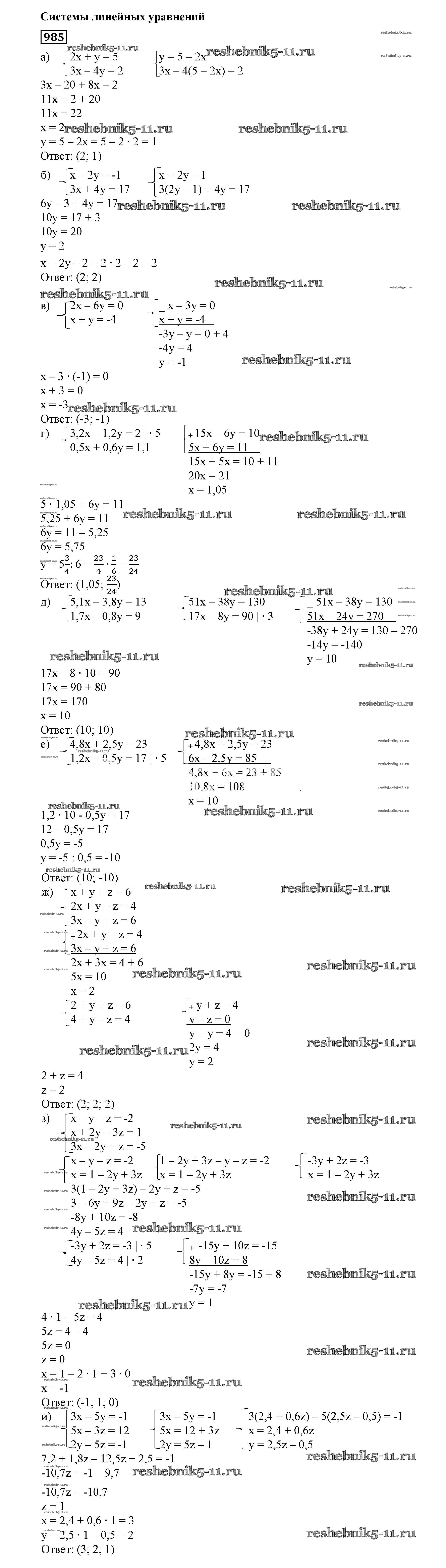 Готовая домашняя работа с ответами по Алгебре за 7 класс Никольский, Потапов, Решетников, Шевкин Учебник МГУ - школе Просвещение 2013 ФГОС - Упражнения 985