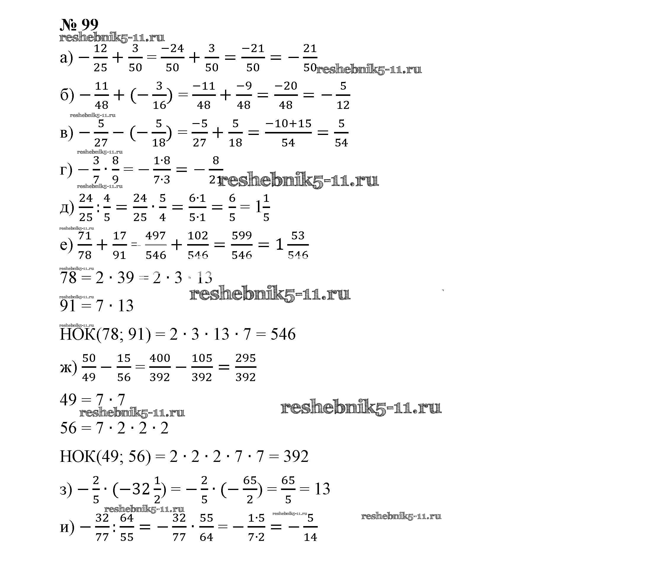Готовая домашняя работа с ответами по Алгебре за 7 класс Никольский, Потапов, Решетников, Шевкин Учебник МГУ - школе Просвещение 2013 ФГОС - Упражнения 99
