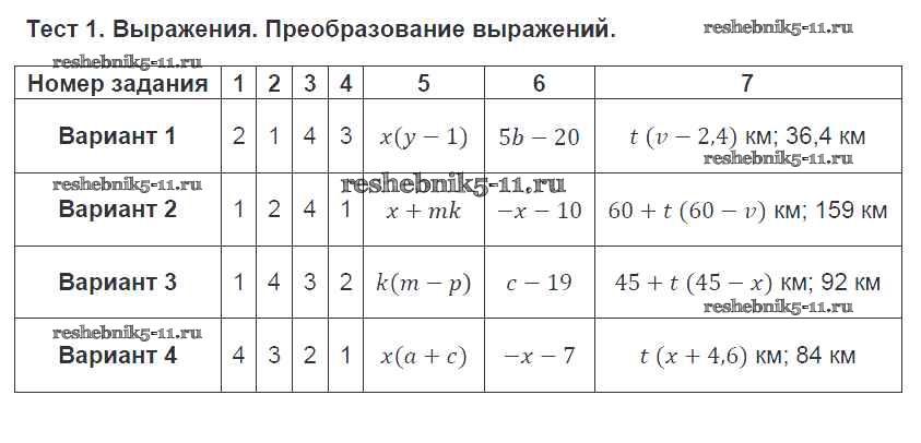 Готовая домашняя работа с ответами по Алгебре за 7 класс Дудницын, Кронгауз Тематические тесты Просвещение 2011 ФГОС - Тесты 1