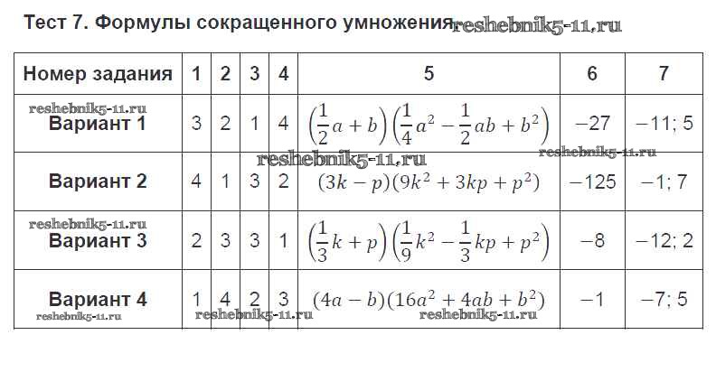 Готовая домашняя работа с ответами по Алгебре за 7 класс Дудницын, Кронгауз Тематические тесты Просвещение 2011 ФГОС - Тесты 7
