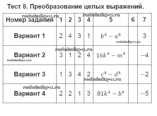Готовая домашняя работа с ответами по Алгебре за 7 класс Дудницын, Кронгауз Тематические тесты Просвещение 2011 ФГОС - Тесты 8