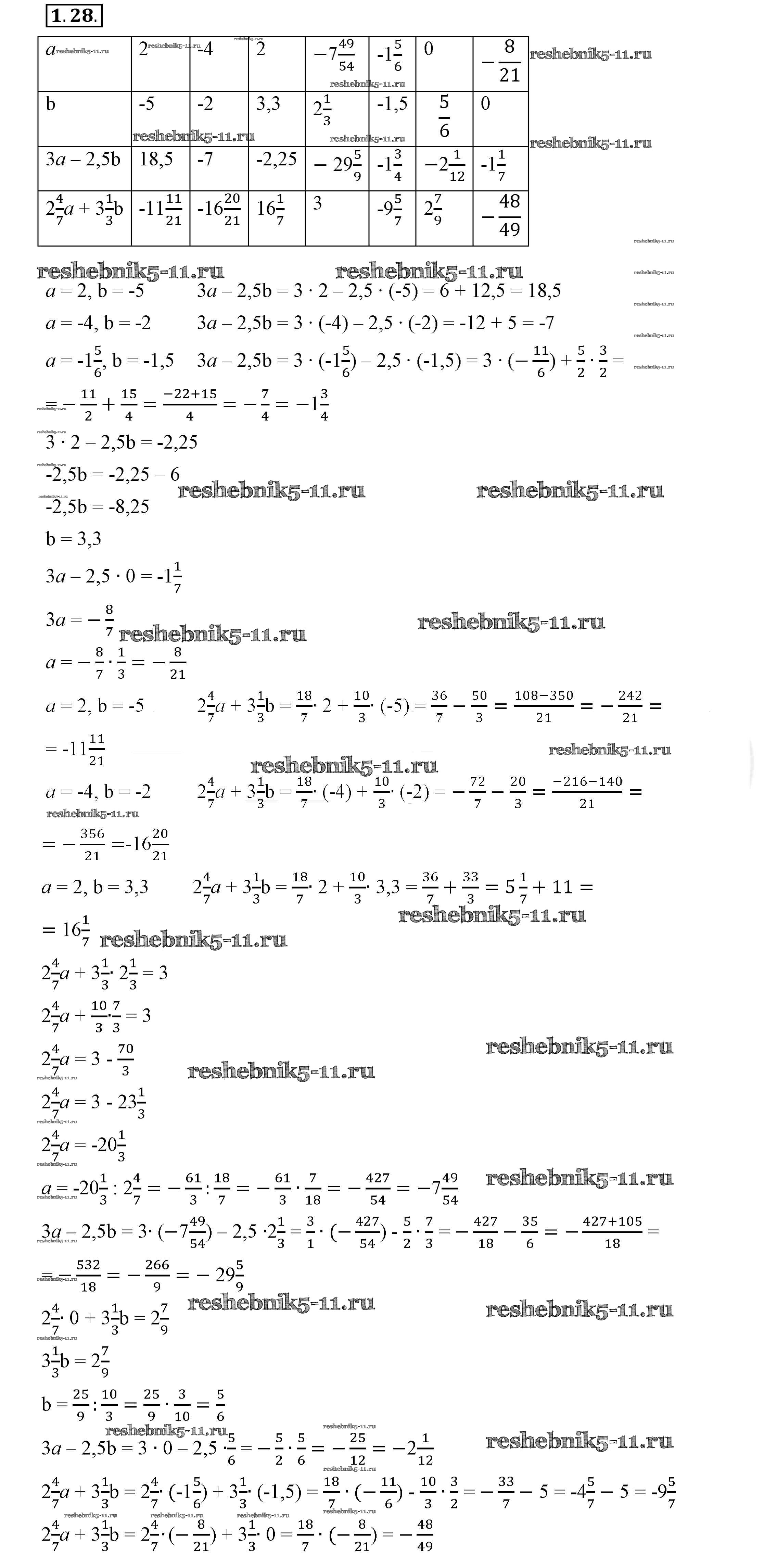 Готовая домашняя работа с ответами по Алгебре за 7 класс Мордкович, Семёнов, Александрова, Мардахаева Учебник Просвещение 2018 ФГОС - §1. Числовые и алгебраические выражения 1.28