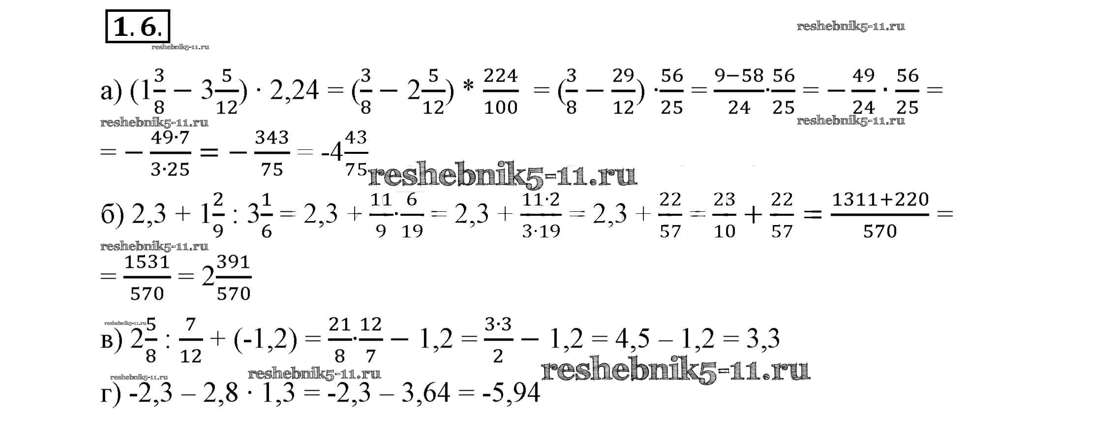 Готовая домашняя работа с ответами по Алгебре за 7 класс Мордкович, Семёнов, Александрова, Мардахаева Учебник Просвещение 2018 ФГОС - §1. Числовые и алгебраические выражения 1.6