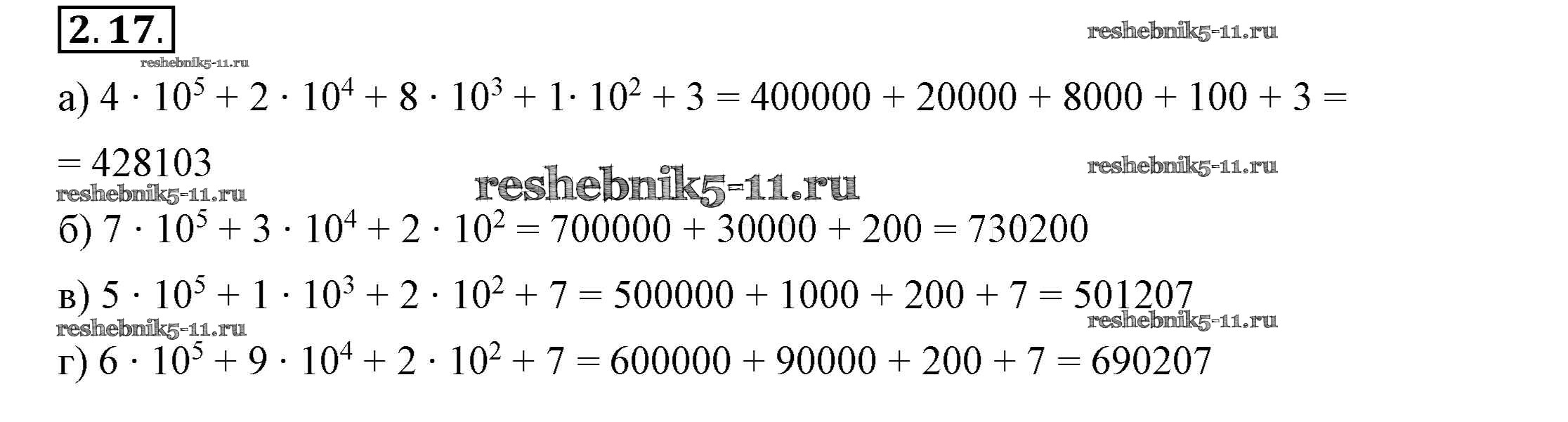 Готовая домашняя работа с ответами по Алгебре за 7 класс Мордкович, Семёнов, Александрова, Мардахаева Учебник Просвещение 2018 ФГОС - §2. Понятие о математическом языке 2.17