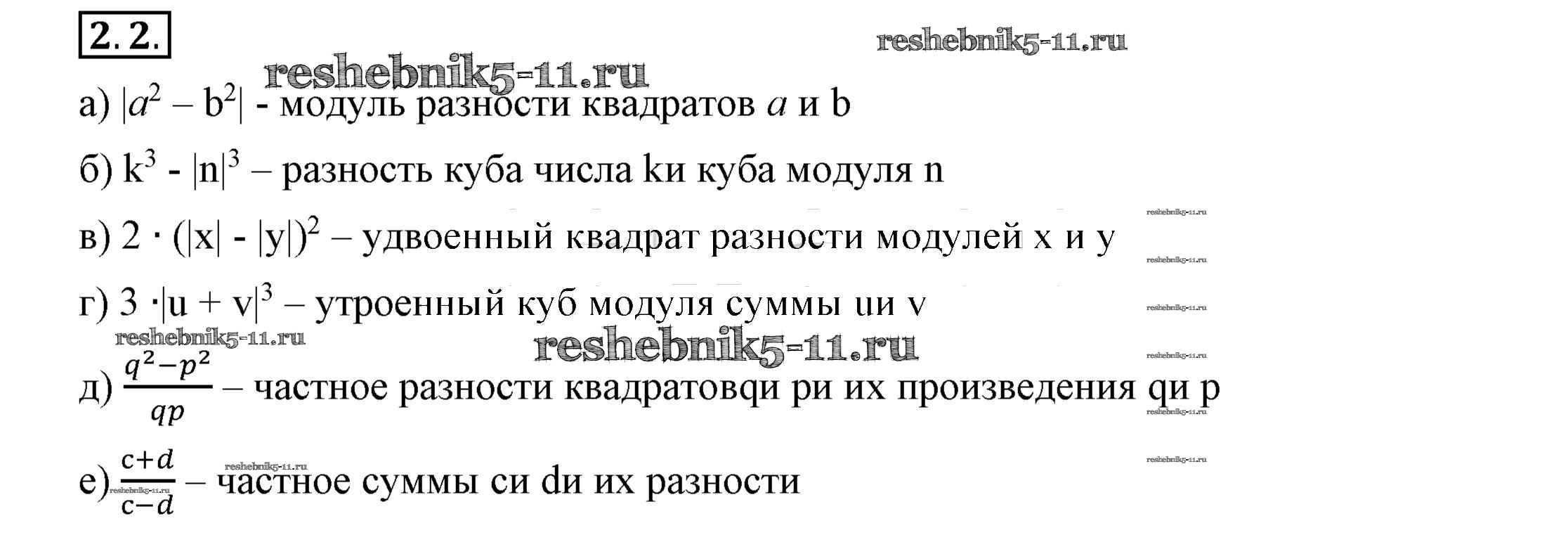 Готовая домашняя работа с ответами по Алгебре за 7 класс Мордкович, Семёнов, Александрова, Мардахаева Учебник Просвещение 2018 ФГОС - §2. Понятие о математическом языке 2.2