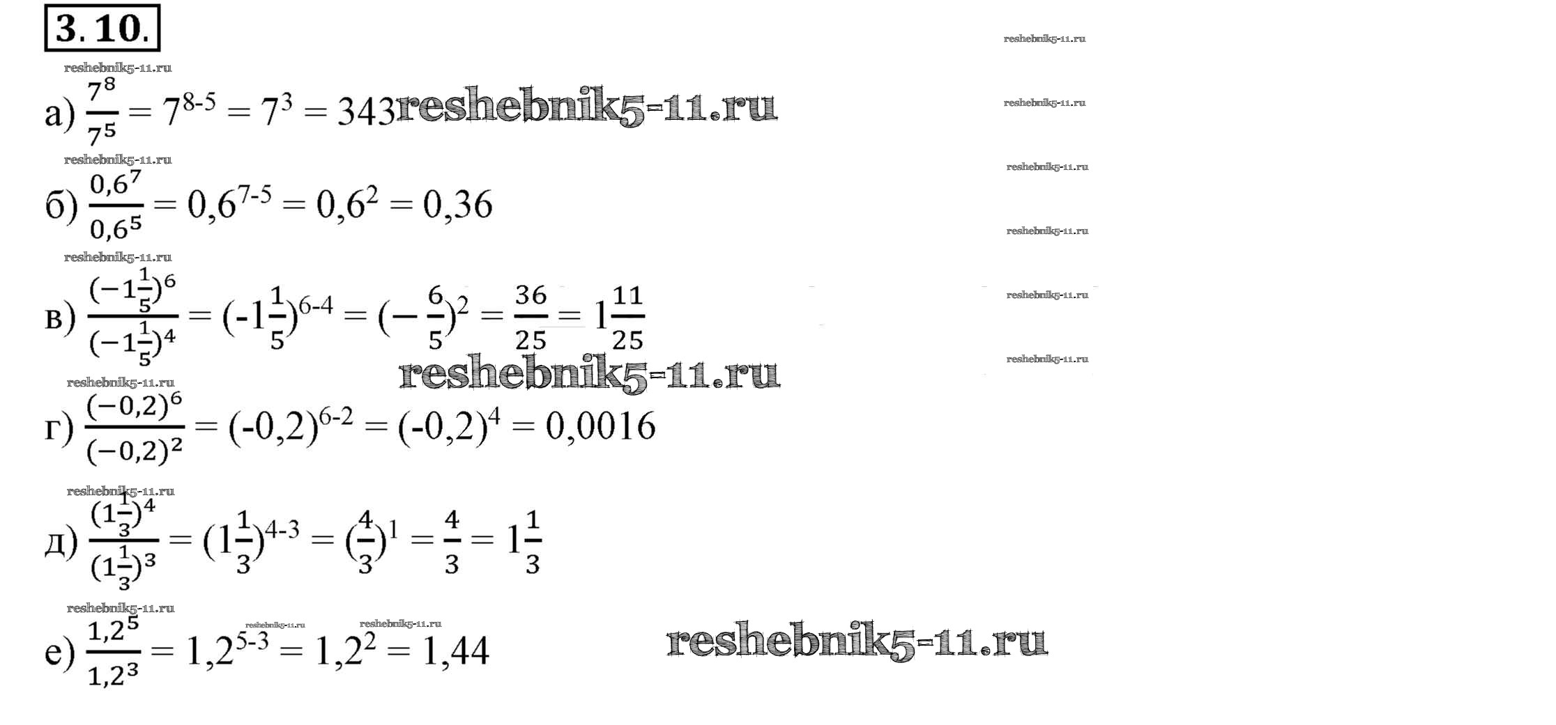 Готовая домашняя работа с ответами по Алгебре за 7 класс Мордкович, Семёнов, Александрова, Мардахаева Учебник Просвещение 2018 ФГОС - §3. Свойства степеней с натуральными показателями 3.10