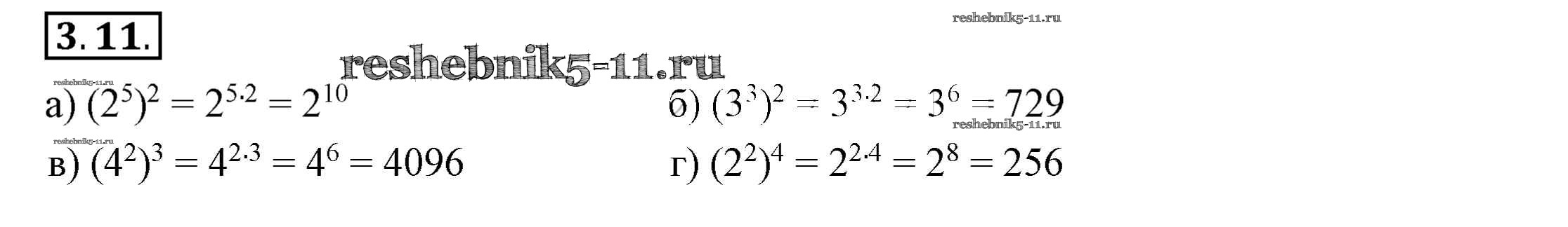 Готовая домашняя работа с ответами по Алгебре за 7 класс Мордкович, Семёнов, Александрова, Мардахаева Учебник Просвещение 2018 ФГОС - §3. Свойства степеней с натуральными показателями 3.11