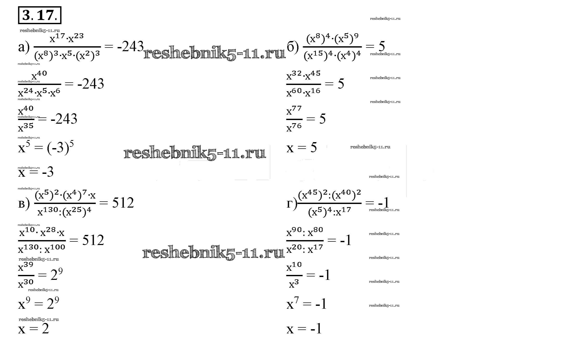 Готовая домашняя работа с ответами по Алгебре за 7 класс Мордкович, Семёнов, Александрова, Мардахаева Учебник Просвещение 2018 ФГОС - §3. Свойства степеней с натуральными показателями 3.17