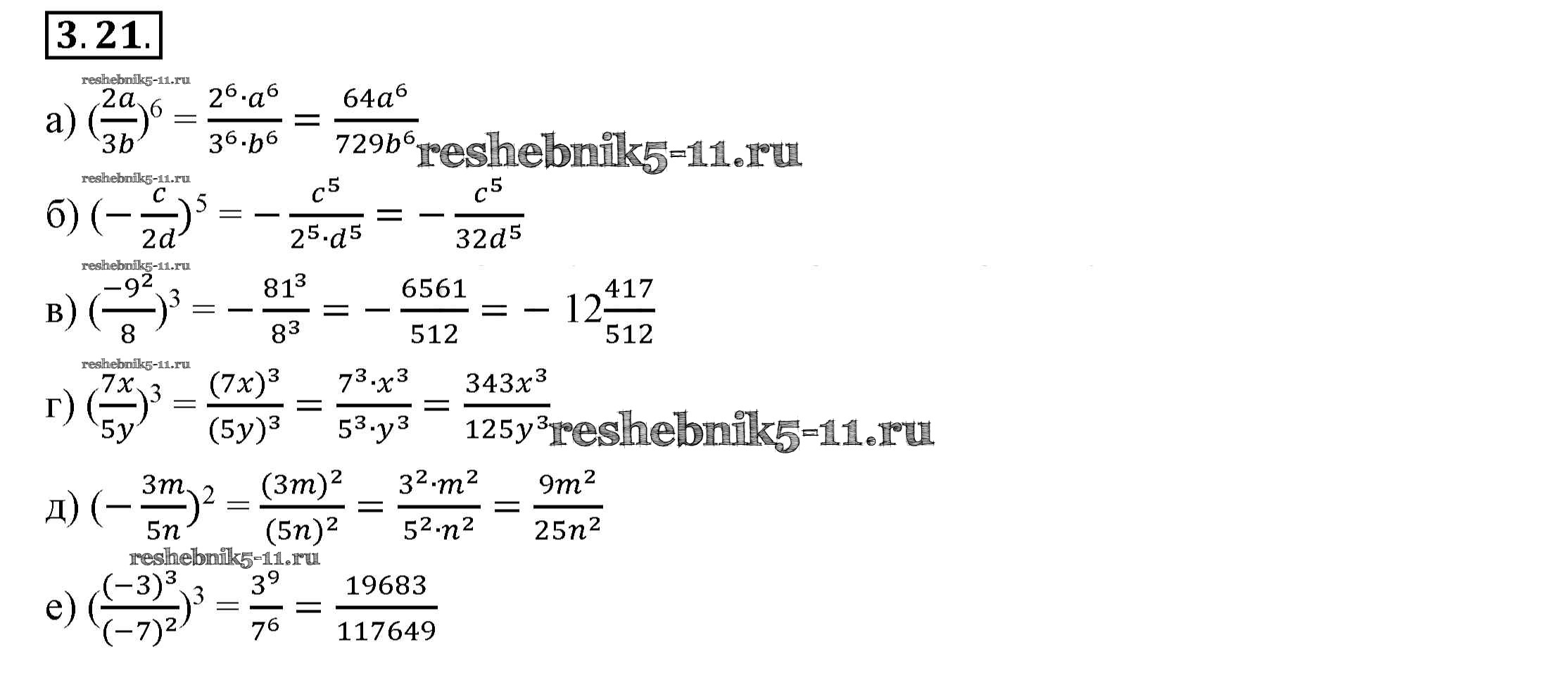 Готовая домашняя работа с ответами по Алгебре за 7 класс Мордкович, Семёнов, Александрова, Мардахаева Учебник Просвещение 2018 ФГОС - §3. Свойства степеней с натуральными показателями 3.21