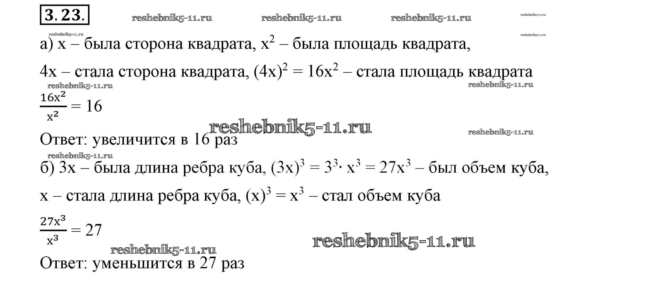 Готовая домашняя работа с ответами по Алгебре за 7 класс Мордкович, Семёнов, Александрова, Мардахаева Учебник Просвещение 2018 ФГОС - §3. Свойства степеней с натуральными показателями 3.23