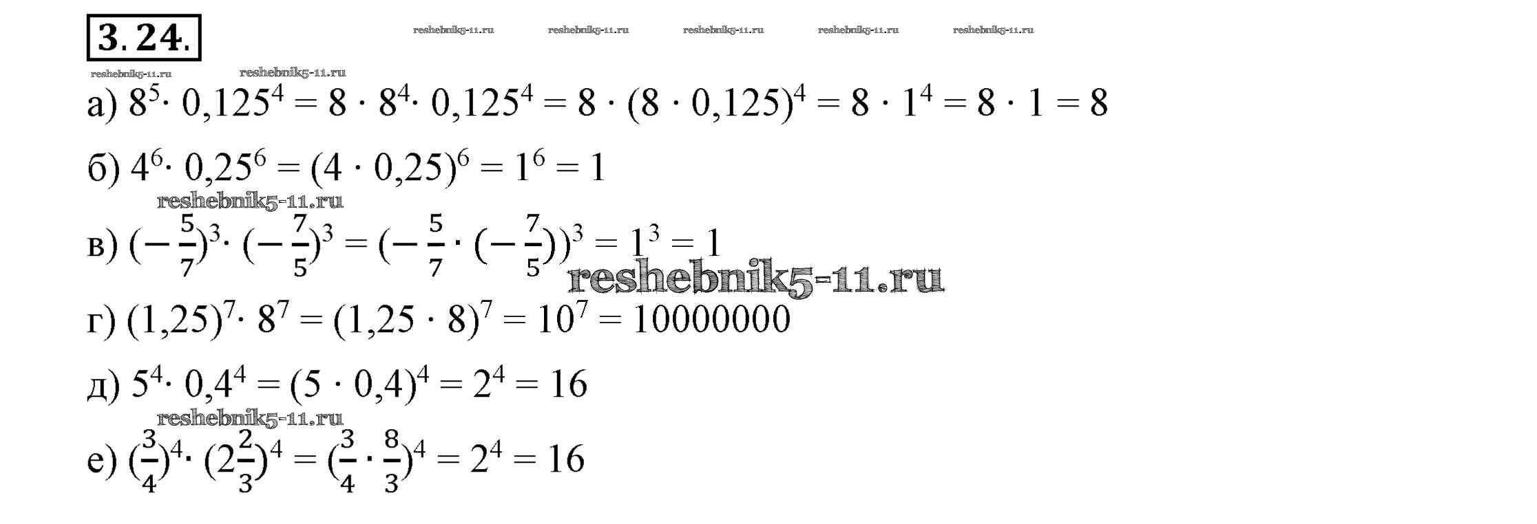 Готовая домашняя работа с ответами по Алгебре за 7 класс Мордкович, Семёнов, Александрова, Мардахаева Учебник Просвещение 2018 ФГОС - §3. Свойства степеней с натуральными показателями 3.24