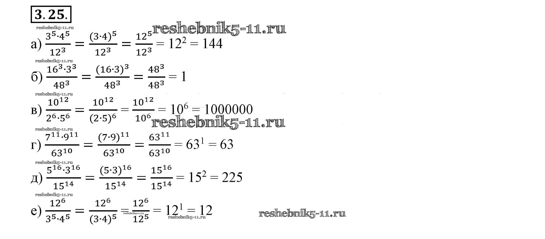 Готовая домашняя работа с ответами по Алгебре за 7 класс Мордкович, Семёнов, Александрова, Мардахаева Учебник Просвещение 2018 ФГОС - §3. Свойства степеней с натуральными показателями 3.25