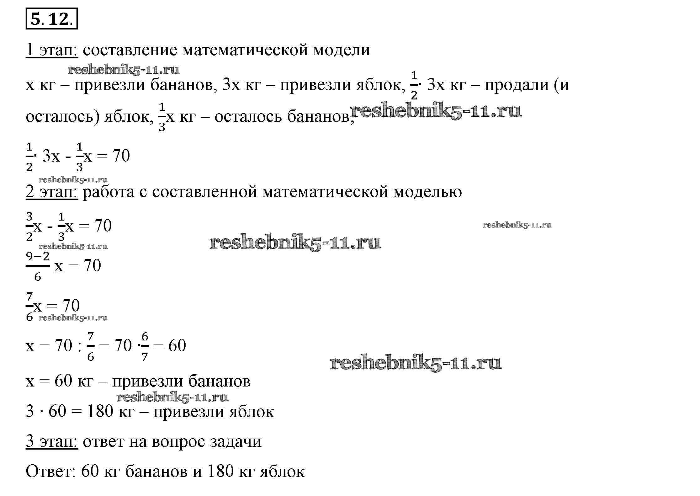 Готовая домашняя работа с ответами по Алгебре за 7 класс Мордкович, Семёнов, Александрова, Мардахаева Учебник Просвещение 2018 ФГОС - §5. Линейные уравнения с одной переменной 5.12