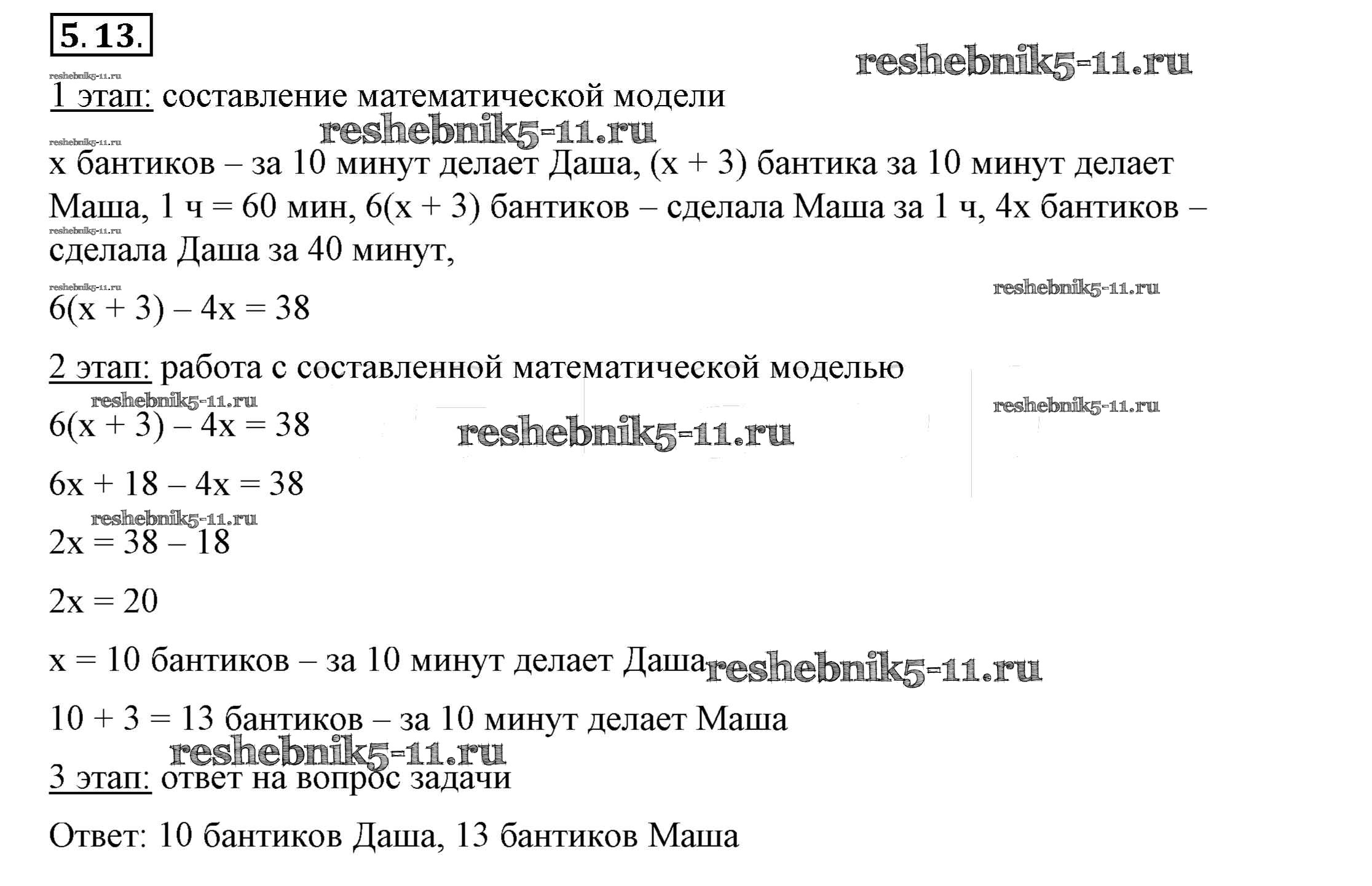 Готовая домашняя работа с ответами по Алгебре за 7 класс Мордкович, Семёнов, Александрова, Мардахаева Учебник Просвещение 2018 ФГОС - §5. Линейные уравнения с одной переменной 5.13