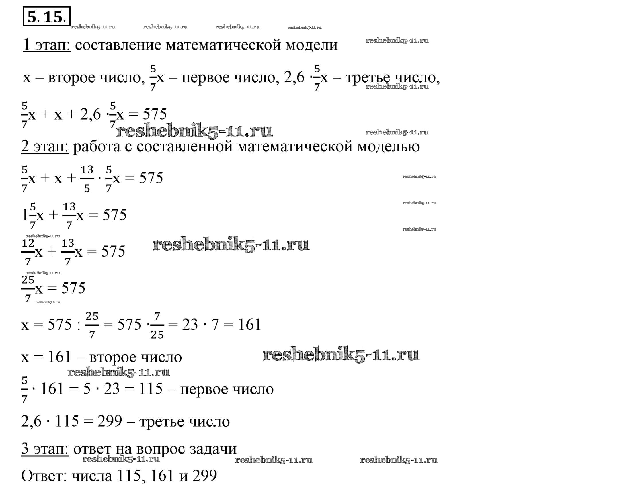 Готовая домашняя работа с ответами по Алгебре за 7 класс Мордкович, Семёнов, Александрова, Мардахаева Учебник Просвещение 2018 ФГОС - §5. Линейные уравнения с одной переменной 5.15