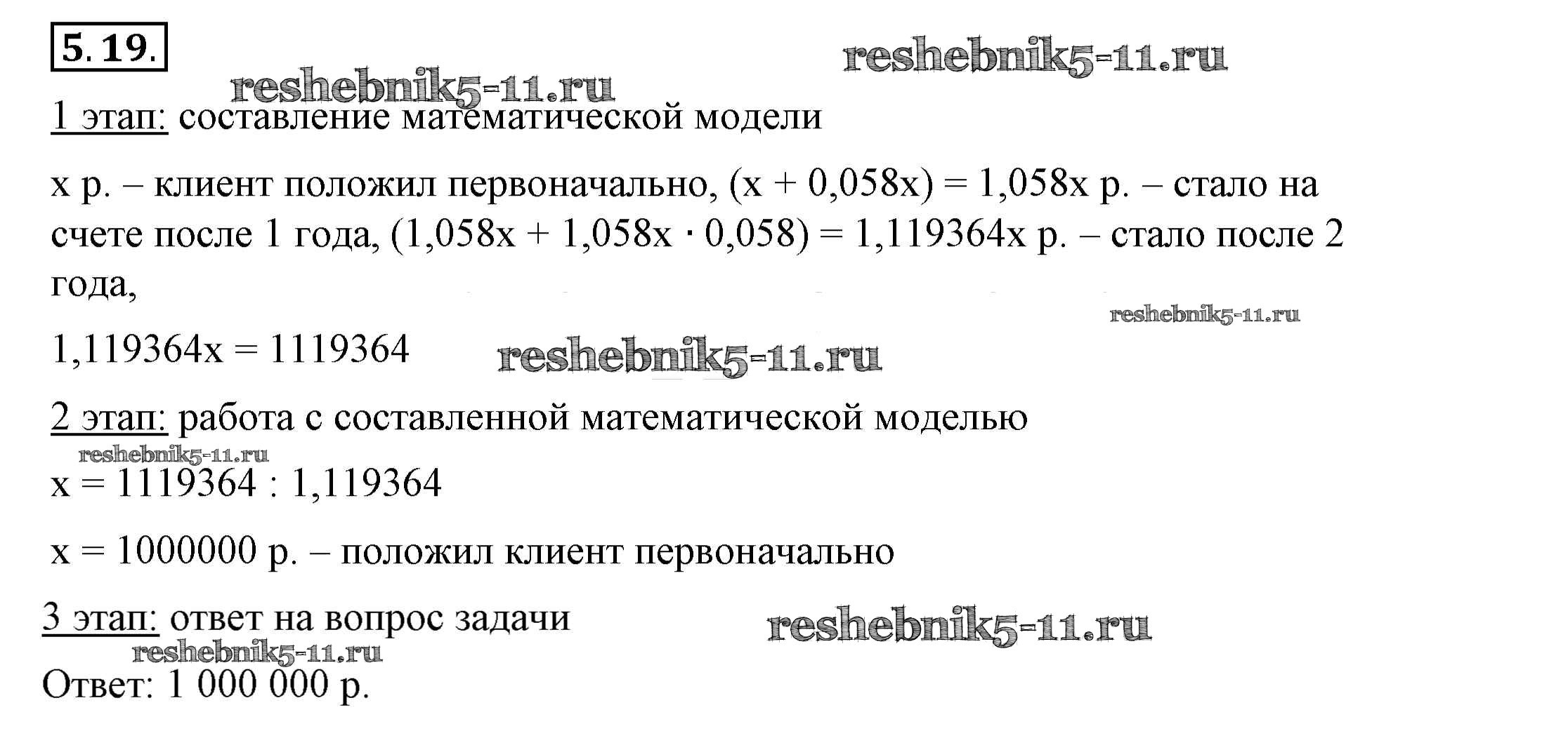 Готовая домашняя работа с ответами по Алгебре за 7 класс Мордкович, Семёнов, Александрова, Мардахаева Учебник Просвещение 2018 ФГОС - §5. Линейные уравнения с одной переменной 5.19