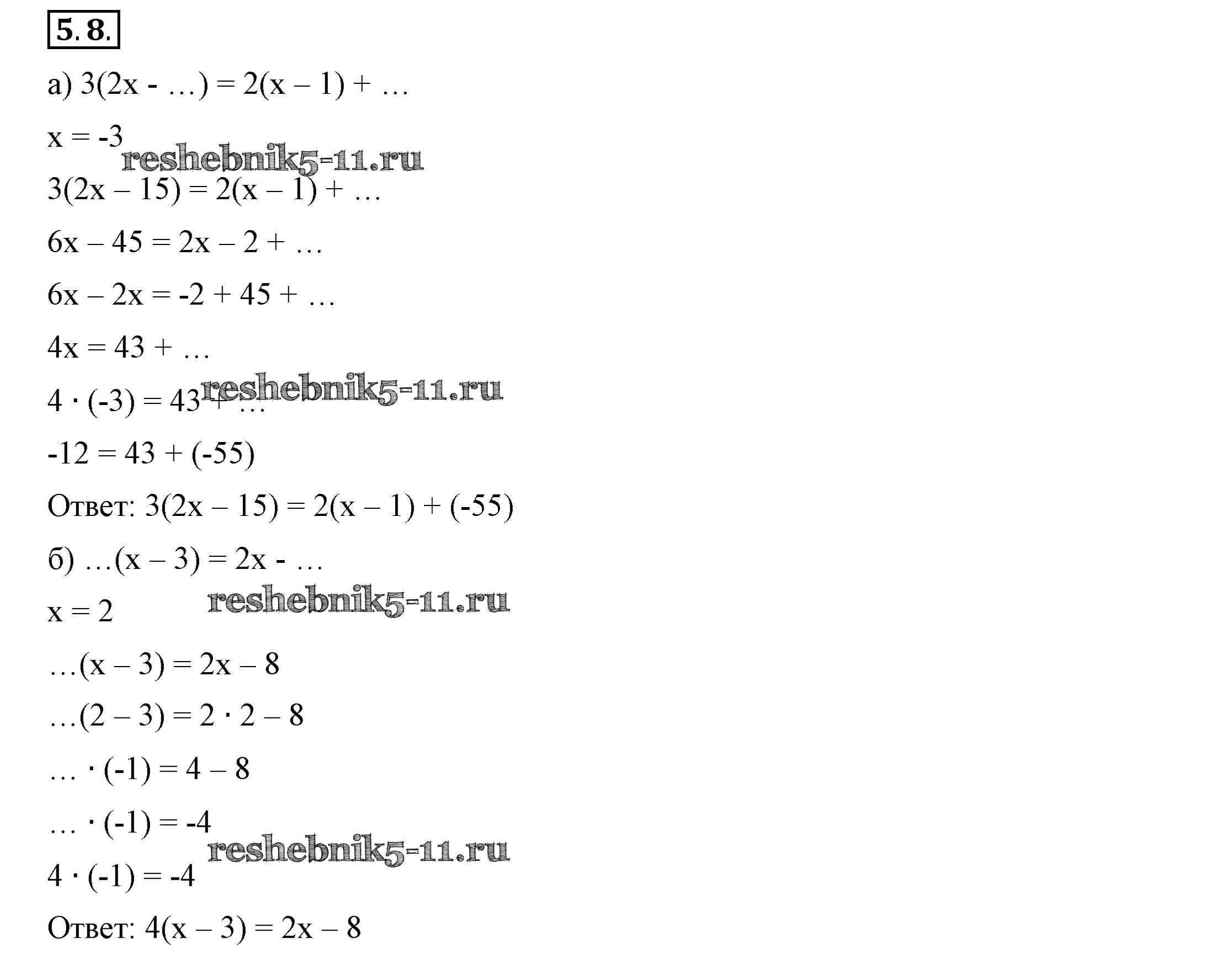 Готовая домашняя работа с ответами по Алгебре за 7 класс Мордкович, Семёнов, Александрова, Мардахаева Учебник Просвещение 2018 ФГОС - §5. Линейные уравнения с одной переменной 5.8