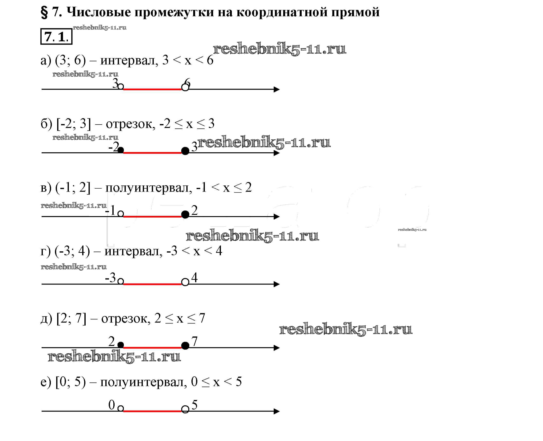 Готовая домашняя работа с ответами по Алгебре за 7 класс Мордкович, Семёнов, Александрова, Мардахаева Учебник Просвещение 2018 ФГОС - §7. Числовые промежутки на координатной прямой 7.1