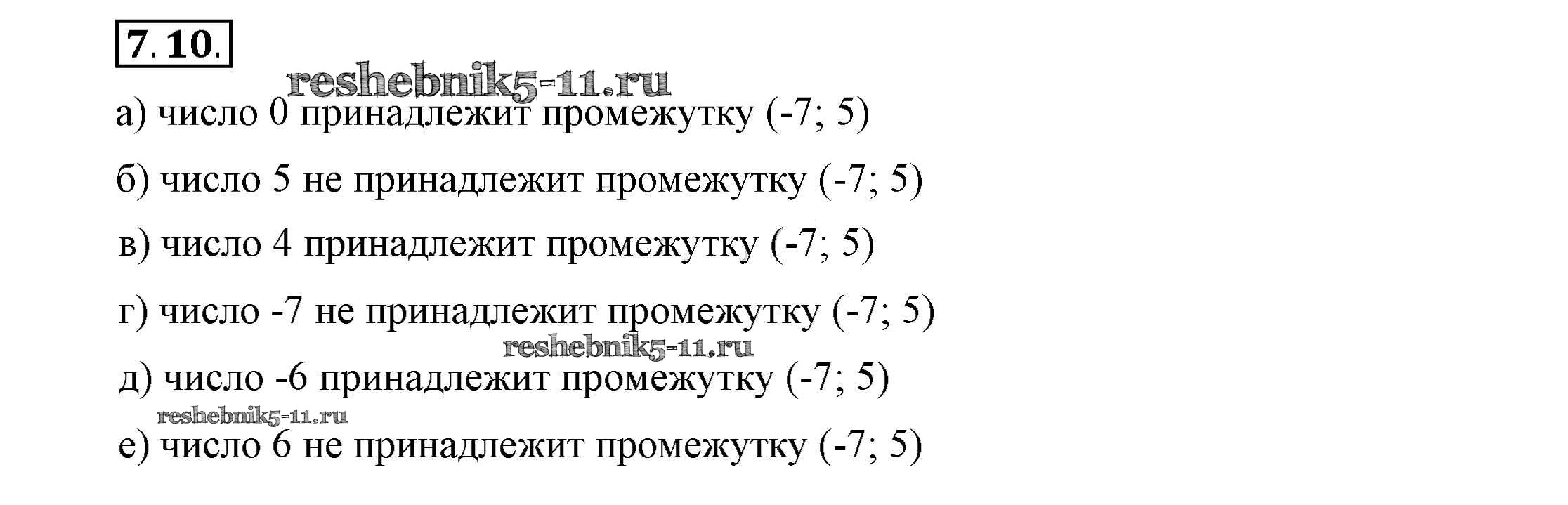 Готовая домашняя работа с ответами по Алгебре за 7 класс Мордкович, Семёнов, Александрова, Мардахаева Учебник Просвещение 2018 ФГОС - §7. Числовые промежутки на координатной прямой 7.10