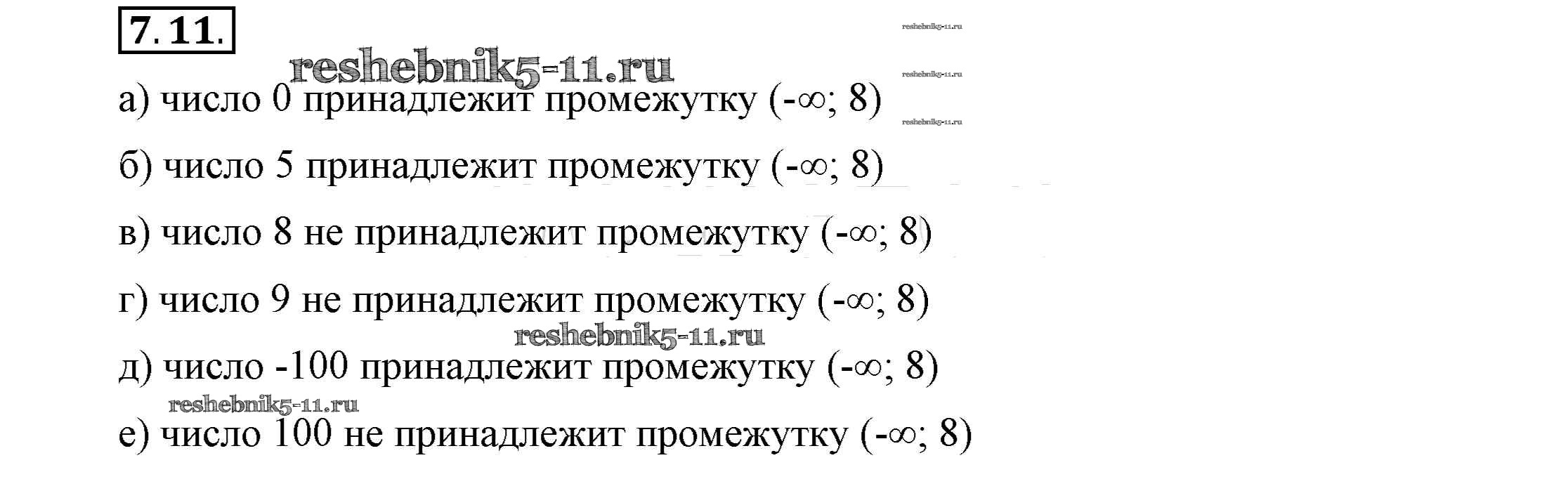 Готовая домашняя работа с ответами по Алгебре за 7 класс Мордкович, Семёнов, Александрова, Мардахаева Учебник Просвещение 2018 ФГОС - §7. Числовые промежутки на координатной прямой 7.11