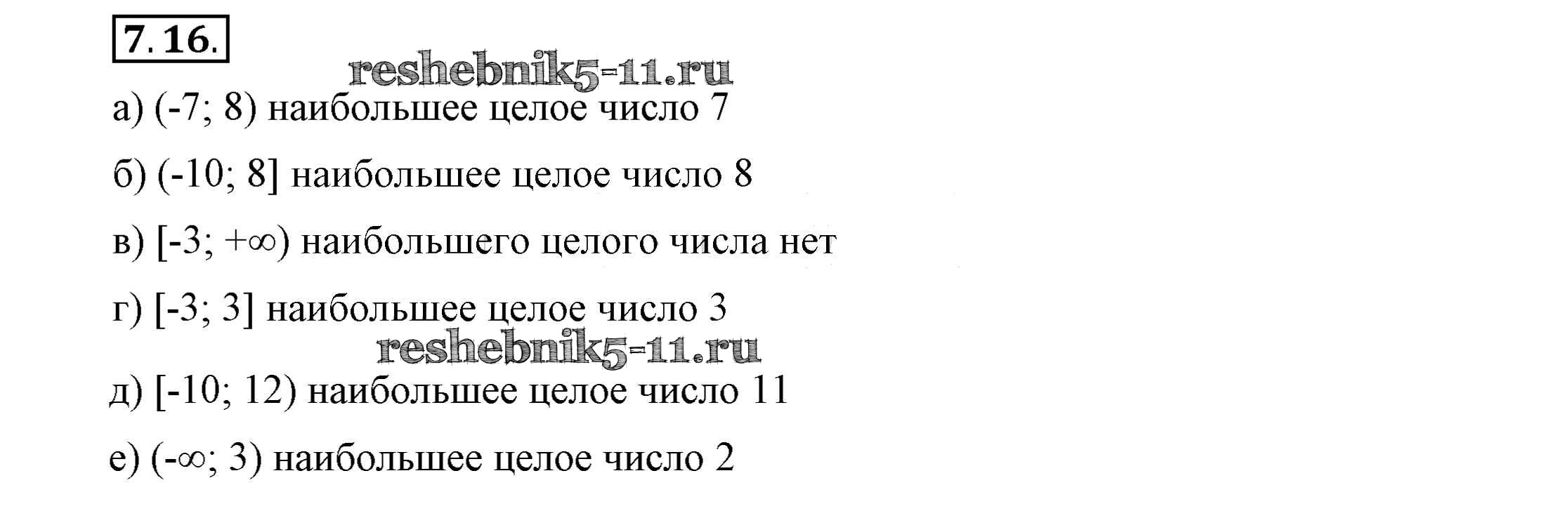 Готовая домашняя работа с ответами по Алгебре за 7 класс Мордкович, Семёнов, Александрова, Мардахаева Учебник Просвещение 2018 ФГОС - §7. Числовые промежутки на координатной прямой 7.16