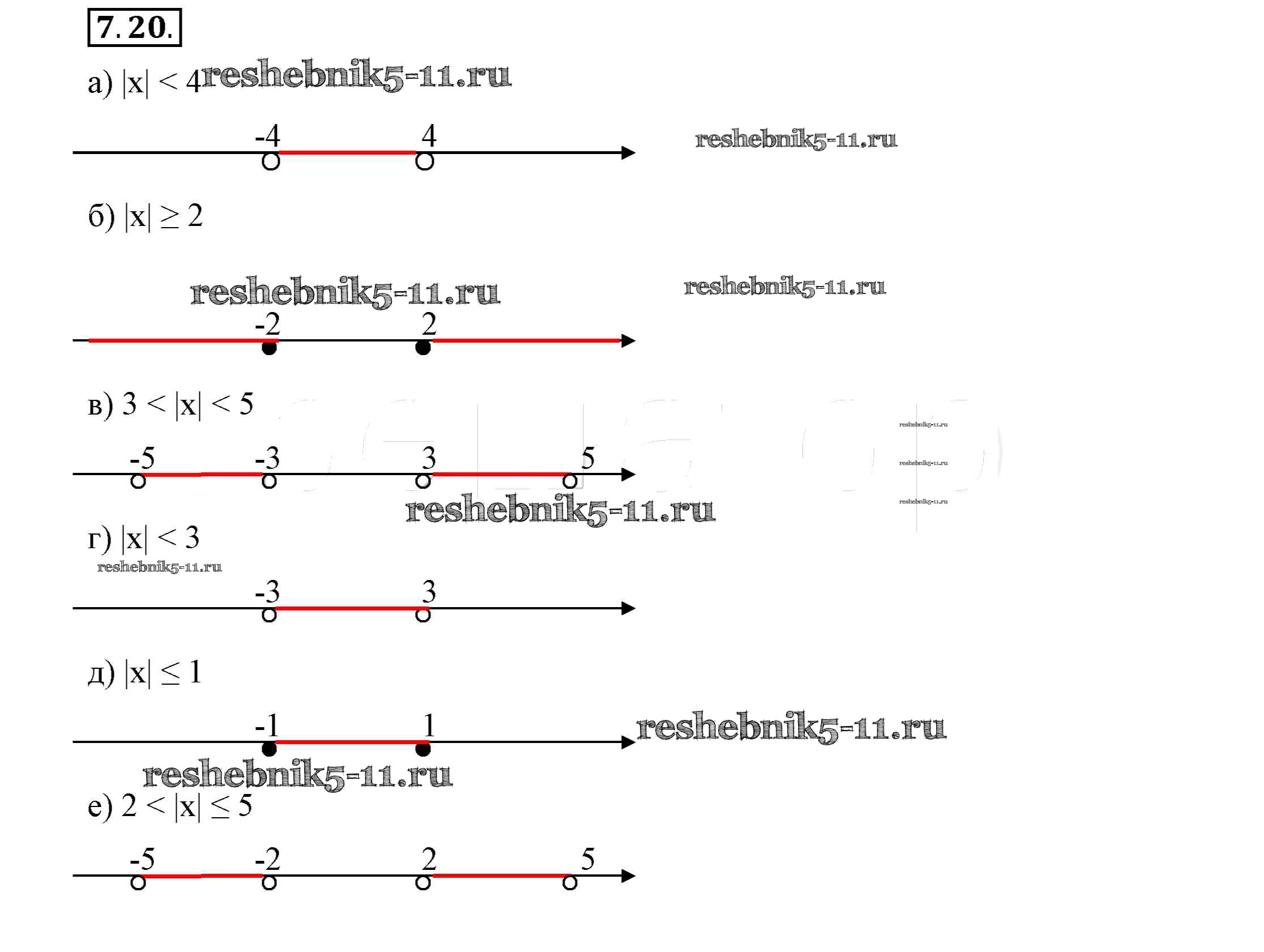 Готовая домашняя работа с ответами по Алгебре за 7 класс Мордкович, Семёнов, Александрова, Мардахаева Учебник Просвещение 2018 ФГОС - §7. Числовые промежутки на координатной прямой 7.20