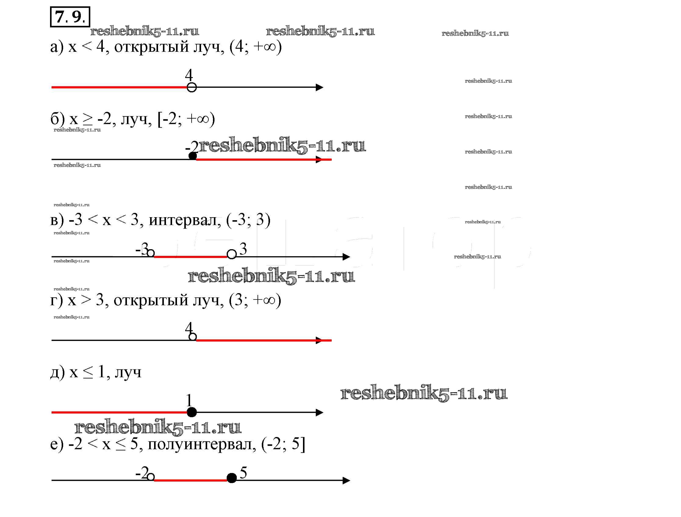 Готовая домашняя работа с ответами по Алгебре за 7 класс Мордкович, Семёнов, Александрова, Мардахаева Учебник Просвещение 2018 ФГОС - §7. Числовые промежутки на координатной прямой 7.9