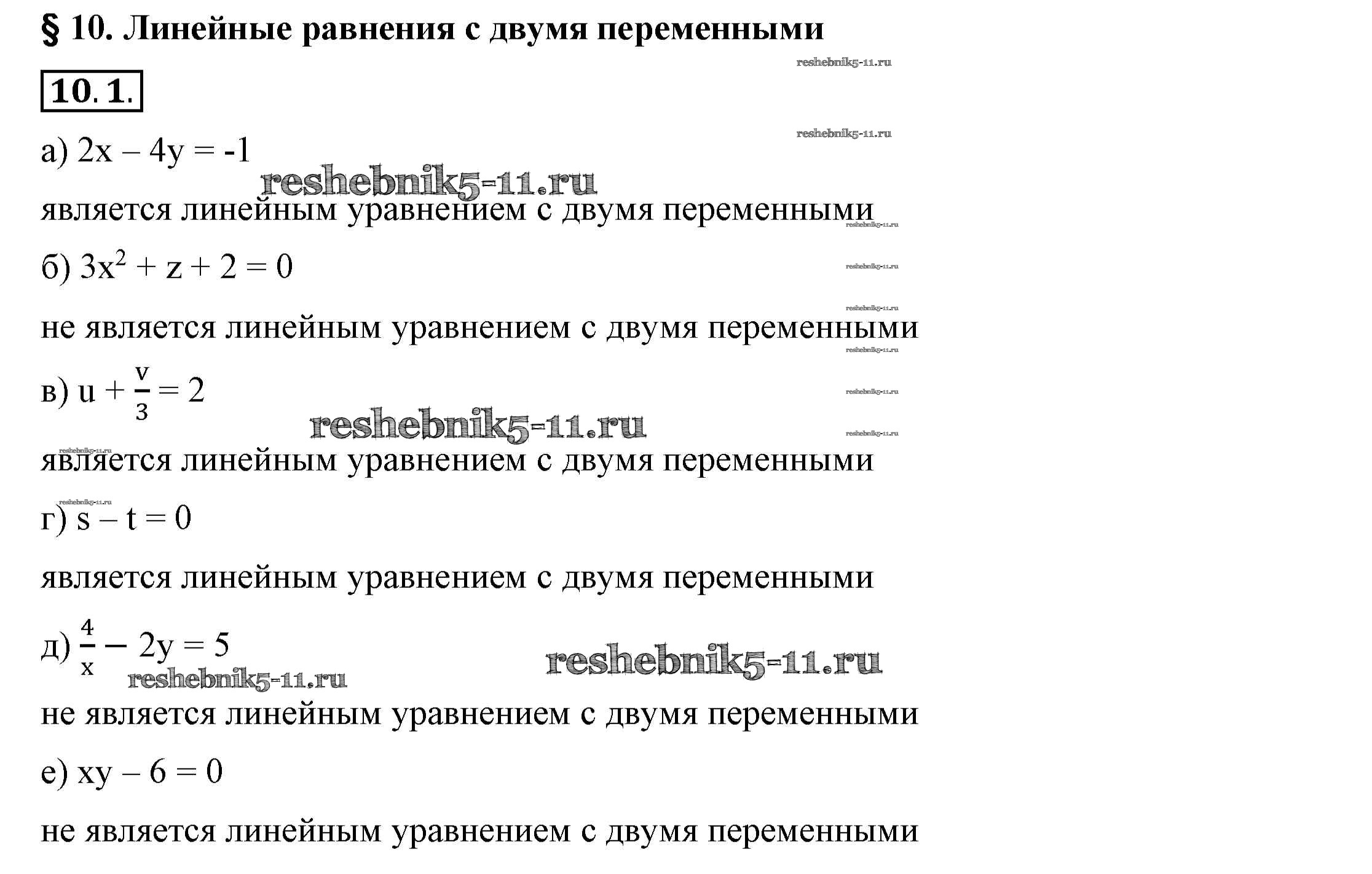 Готовая домашняя работа с ответами по Алгебре за 7 класс Мордкович, Семёнов, Александрова, Мардахаева Учебник Просвещение 2018 ФГОС - §10. Линейные уравнения с двумя переменными 10.1