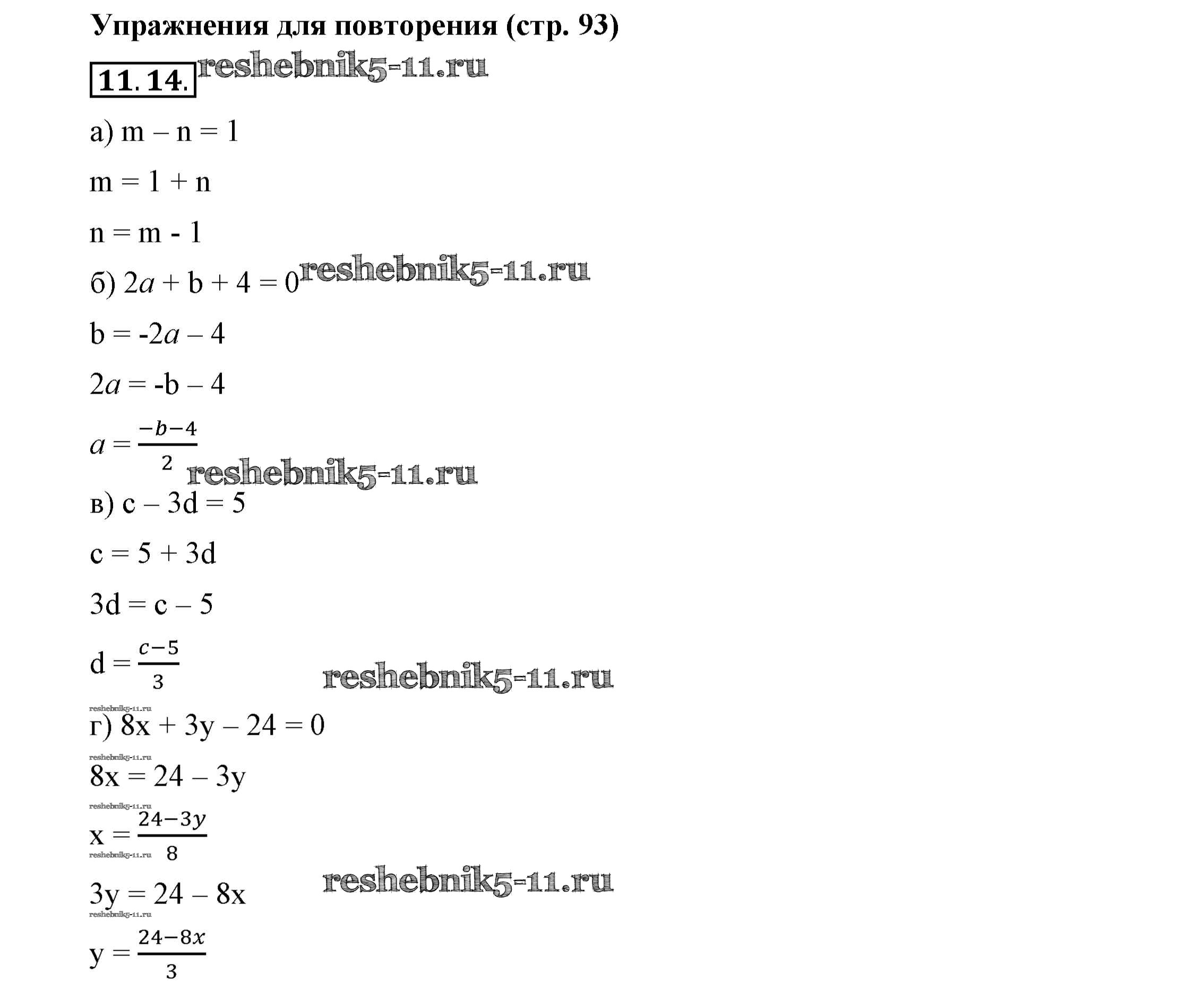 Готовая домашняя работа с ответами по Алгебре за 7 класс Мордкович, Семёнов, Александрова, Мардахаева Учебник Просвещение 2018 ФГОС - §11. График линейного уравнения с двумя переменными 11.14