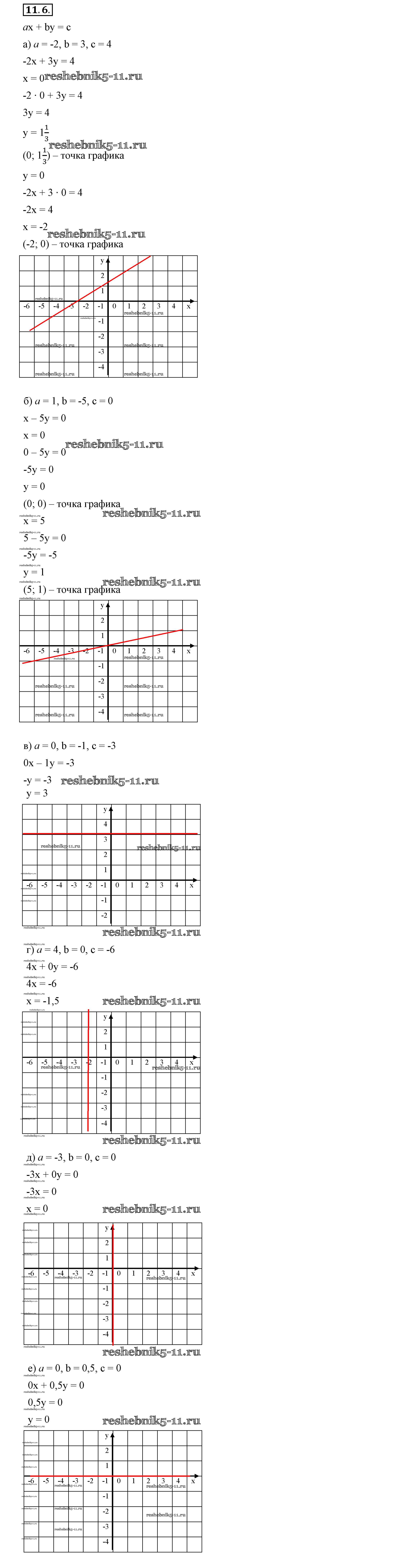 Готовая домашняя работа с ответами по Алгебре за 7 класс Мордкович, Семёнов, Александрова, Мардахаева Учебник Просвещение 2018 ФГОС - §11. График линейного уравнения с двумя переменными 11.6