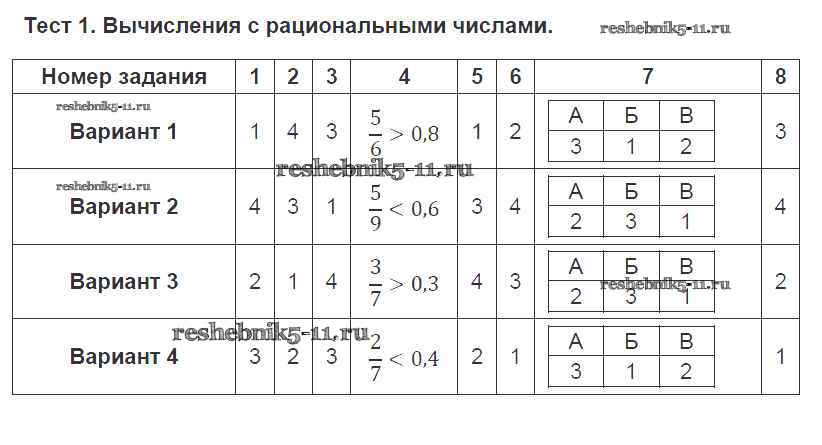 Готовая домашняя работа с ответами по Алгебре за 7 класс Кузнецова, Минаева, Рослова, Суворова Тематические тесты Просвещение 2017 ФГОС - Тесты 1