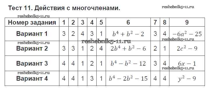 Готовая домашняя работа с ответами по Алгебре за 7 класс Кузнецова, Минаева, Рослова, Суворова Тематические тесты Просвещение 2017 ФГОС - Тесты 11