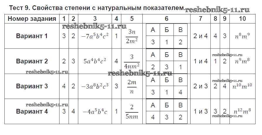 Готовая домашняя работа с ответами по Алгебре за 7 класс Кузнецова, Минаева, Рослова, Суворова Тематические тесты Просвещение 2017 ФГОС - Тесты 9
