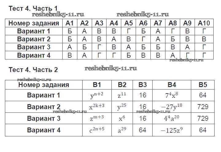 Готовая домашняя работа с ответами по Алгебре за 7 класс Ключникова, Комиссарова Тесты УМК Экзамен 2011 ФГОС - Тесты 4
