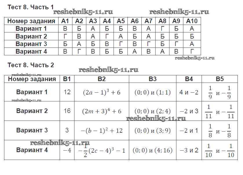 Готовая домашняя работа с ответами по Алгебре за 7 класс Ключникова, Комиссарова Тесты УМК Экзамен 2011 ФГОС - Тесты 8