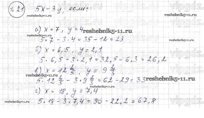 Готовая домашняя работа с ответами по Алгебре за 7 класс Мордкович, Александрова, Мишустина, Тульчинская Задачник Базовый уровень Часть 2 Мнемозина 2013 ФГОС - § 1. Числовые и алгебраические выражения 21
