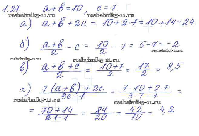 Готовая домашняя работа с ответами по Алгебре за 7 класс Мордкович, Александрова, Мишустина, Тульчинская Задачник Базовый уровень Часть 2 Мнемозина 2013 ФГОС - § 1. Числовые и алгебраические выражения 27