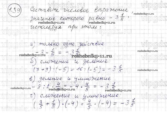 Готовая домашняя работа с ответами по Алгебре за 7 класс Мордкович, Александрова, Мишустина, Тульчинская Задачник Базовый уровень Часть 2 Мнемозина 2013 ФГОС - § 1. Числовые и алгебраические выражения 39