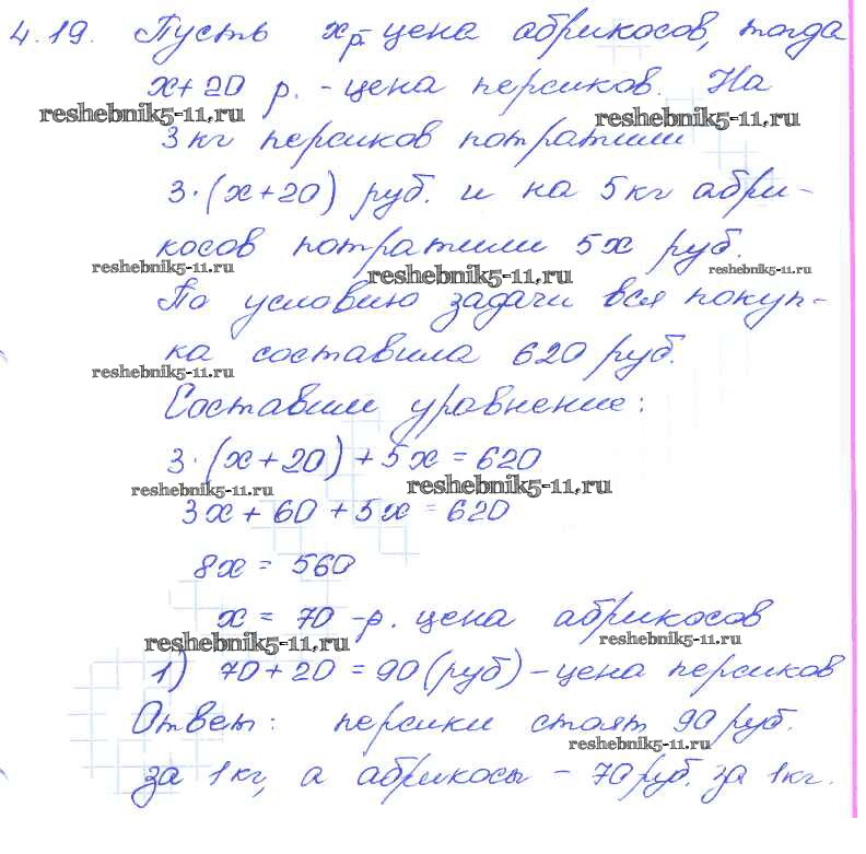 Готовая домашняя работа с ответами по Алгебре за 7 класс Мордкович, Александрова, Мишустина, Тульчинская Задачник Базовый уровень Часть 2 Мнемозина 2013 ФГОС - § 4. Линейное уравнение с одной переменной 19