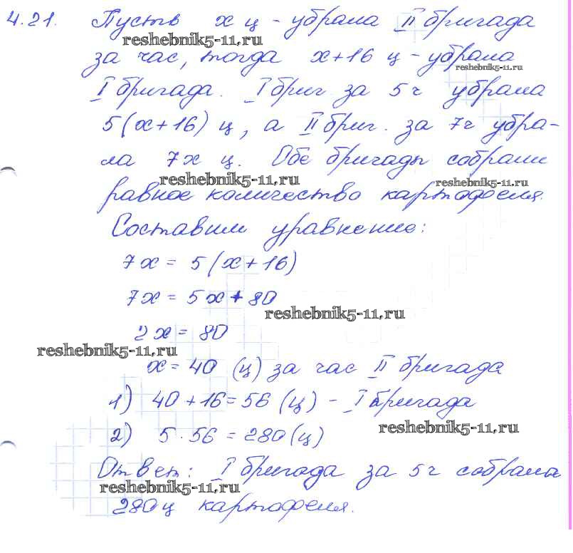 Готовая домашняя работа с ответами по Алгебре за 7 класс Мордкович, Александрова, Мишустина, Тульчинская Задачник Базовый уровень Часть 2 Мнемозина 2013 ФГОС - § 4. Линейное уравнение с одной переменной 21