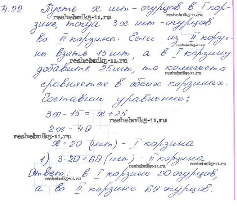 Готовая домашняя работа с ответами по Алгебре за 7 класс Мордкович, Александрова, Мишустина, Тульчинская Задачник Базовый уровень Часть 2 Мнемозина 2013 ФГОС - § 4. Линейное уравнение с одной переменной 22