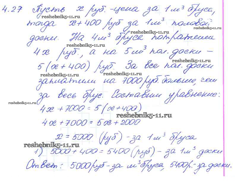 Готовая домашняя работа с ответами по Алгебре за 7 класс Мордкович, Александрова, Мишустина, Тульчинская Задачник Базовый уровень Часть 2 Мнемозина 2013 ФГОС - § 4. Линейное уравнение с одной переменной 27