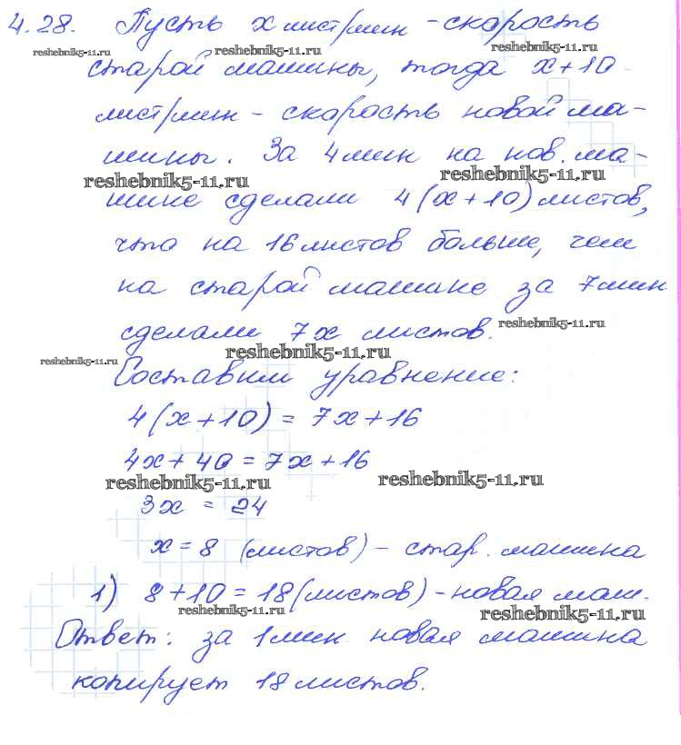Готовая домашняя работа с ответами по Алгебре за 7 класс Мордкович, Александрова, Мишустина, Тульчинская Задачник Базовый уровень Часть 2 Мнемозина 2013 ФГОС - § 4. Линейное уравнение с одной переменной 28