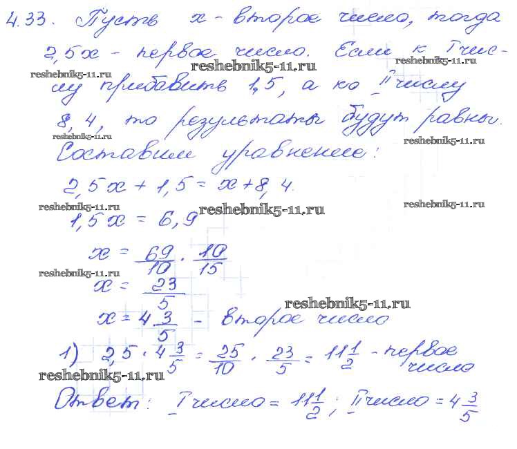 Готовая домашняя работа с ответами по Алгебре за 7 класс Мордкович, Александрова, Мишустина, Тульчинская Задачник Базовый уровень Часть 2 Мнемозина 2013 ФГОС - § 4. Линейное уравнение с одной переменной 33