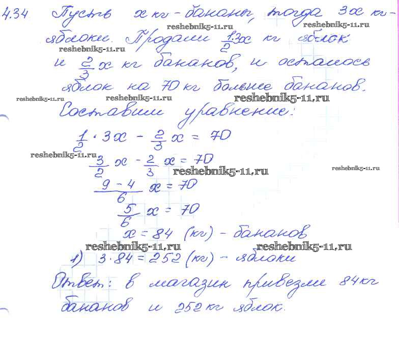 Готовая домашняя работа с ответами по Алгебре за 7 класс Мордкович, Александрова, Мишустина, Тульчинская Задачник Базовый уровень Часть 2 Мнемозина 2013 ФГОС - § 4. Линейное уравнение с одной переменной 34