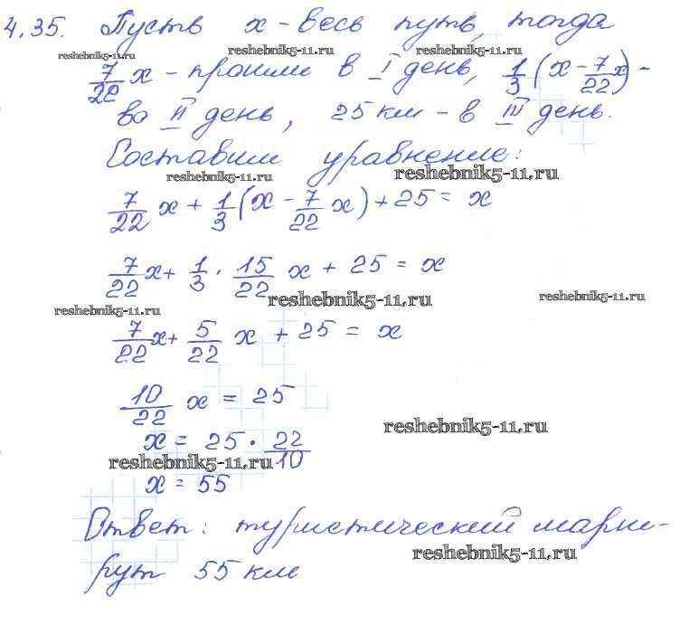 Готовая домашняя работа с ответами по Алгебре за 7 класс Мордкович, Александрова, Мишустина, Тульчинская Задачник Базовый уровень Часть 2 Мнемозина 2013 ФГОС - § 4. Линейное уравнение с одной переменной 35